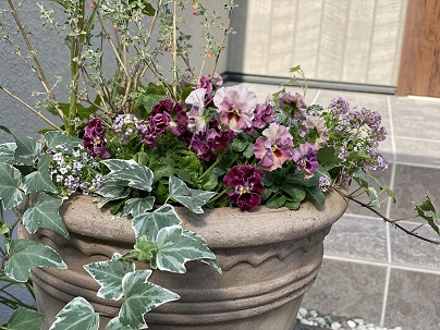 今回はお客様のお好きな紫色のフリルビオラがメインです。