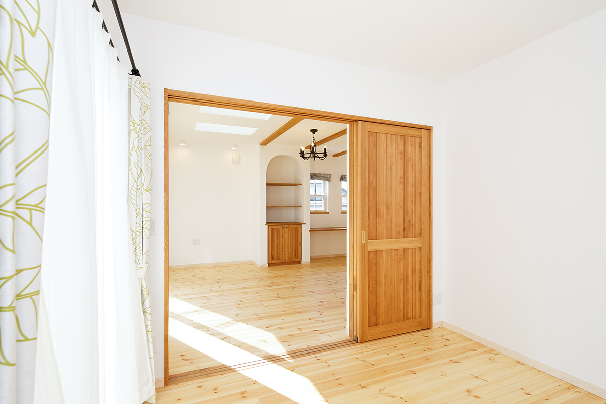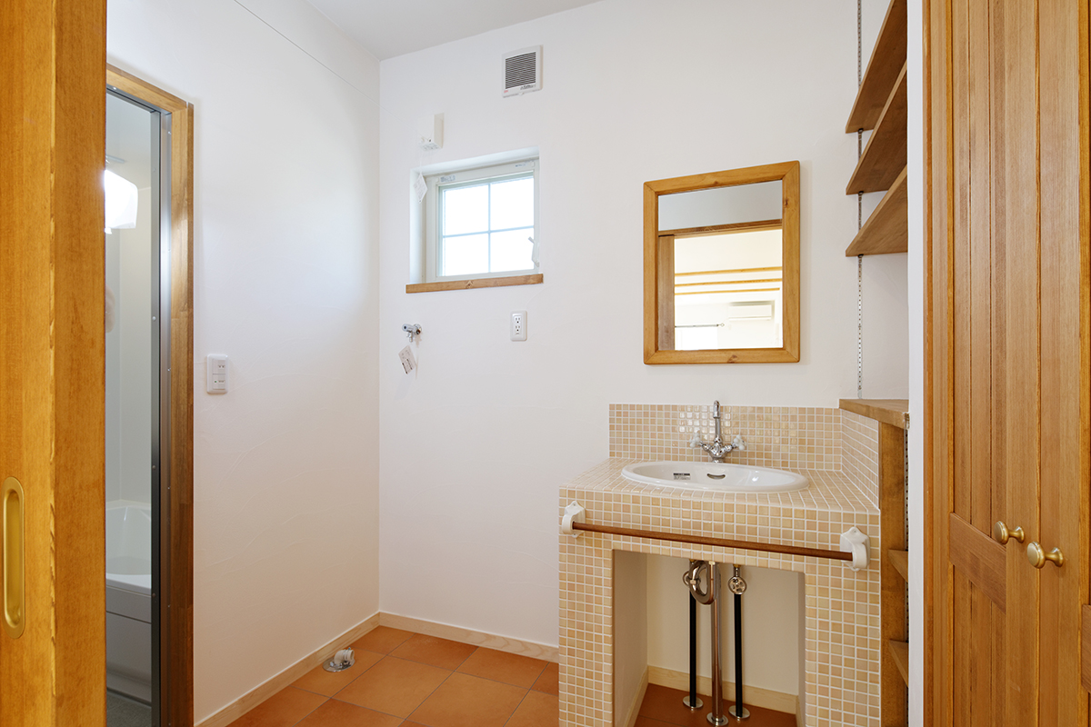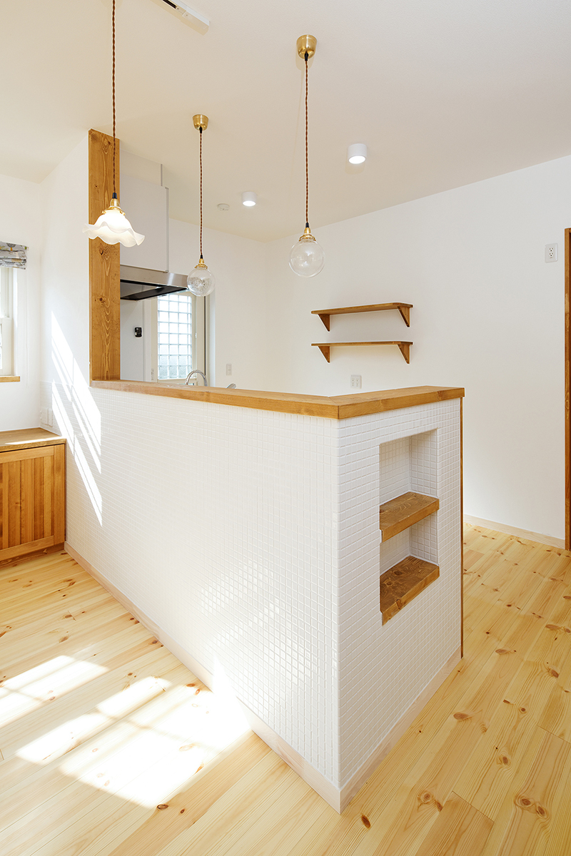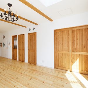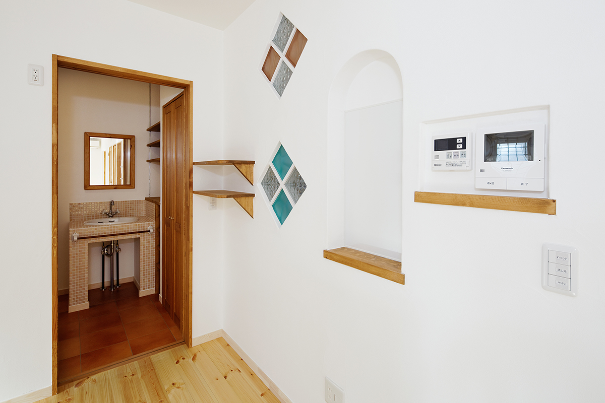 カーサ・カリーナの特徴の南欧風のアンティークな雰囲気キッチンやリビング、照明などひとつひとつにこだわりました。見た目だけでなく、素材にもこだわり、無垢材やテラコッタ、漆喰を使ったナチュラルテイストの家は人にも優しい。長い年月を経たような使用感のある木に真っ白な壁、そのコントラストは新しいけど古いような不思議な感覚のお家です。