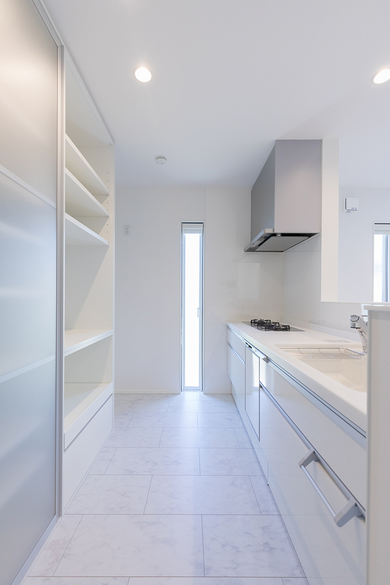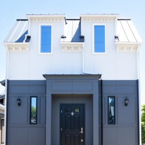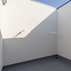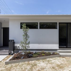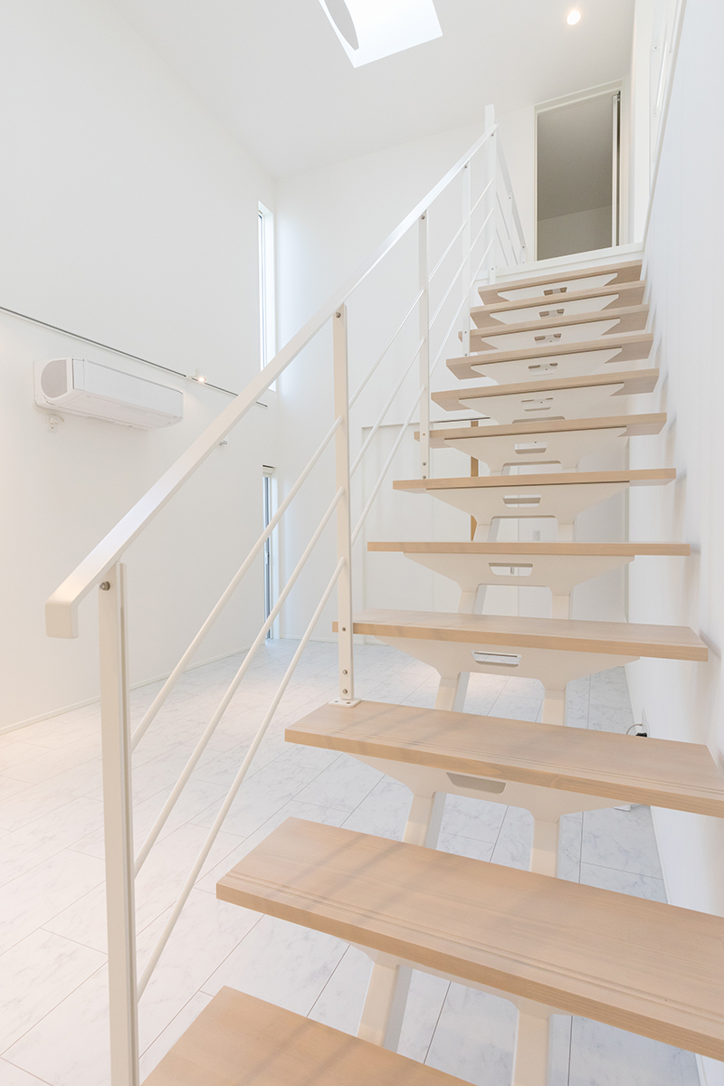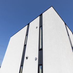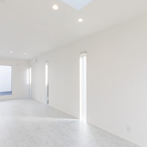 | 備考欄 | 外からは細長い窓しかなく、家の中は全く想像できません。広く大きな窓がないことで防犯性も高く、プライバシーも守られます。天窓からの光を白い壁が反射し、明るく照らすので室内は思った以上に明るく開放的です。今回の施主さまはビルトインガレージのタイプを選ばれましたが他にもさまざまなプランがあります。 |