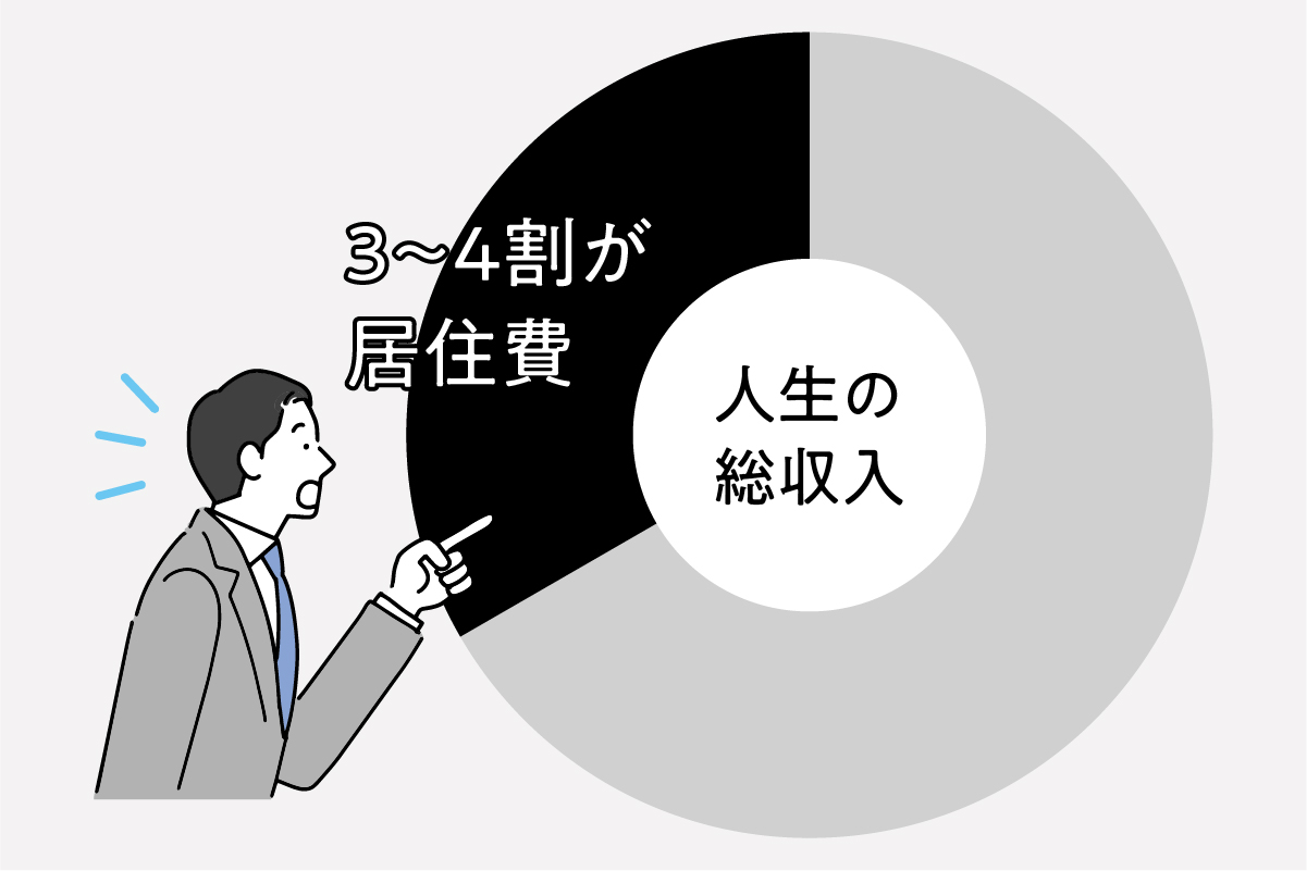 例えば、一般的なサラリーマンの場合、生涯収入の3〜4割が住居費に充てられています。つまり、収入の約1/3が「家」に消えていく計算になります。