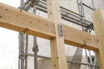 コンピュータ管理により正確に構造体を加工し、木材に金物がセットされて現場に納品されるため、性能にバラつきが少ないことや部材の断面欠損が小さいことも特徴です。金具が中に埋め込まれる形になるため仕上がりが美しく、組み上げの精度も高いです。強靭な接合力でガッチリ組み上げられるため、さまざまな躯体組立や梁成と梁勾配に対応でき、耐震性・耐久性・機密性に優れています。