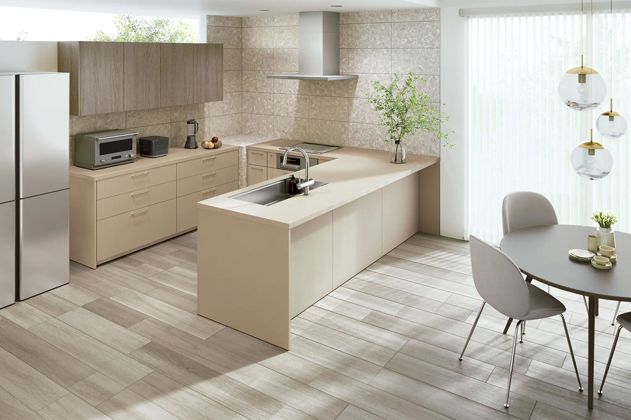 家族の好みに合わせて選べるキッチンレイアウト。セレクトできる種類が多く、セミオーダーのような感覚でお選びいただけます。
