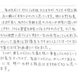 水野工務店にお願いして心から良かったです。ありがとうございました。